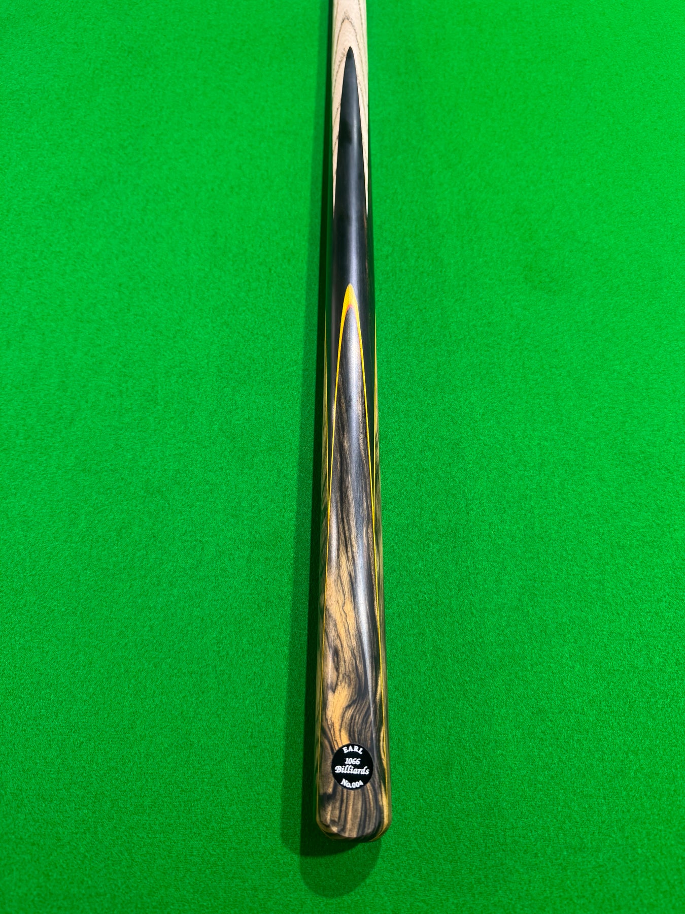 The Earl 004 is constructed from selected ash to provide consistent feedback and a natural feel throughout the stroke. Its centre joint is designed to maintain strong connection and continuity through the cue, avoiding the hollow or disconnected feel commonly associated with lower-grade 2-piece cues. The 8-slice butt construction adds both structural integrity and visual depth, with colour work that sets the Earl range apart from anything else currently offered in the 1066 Billiards lineup.